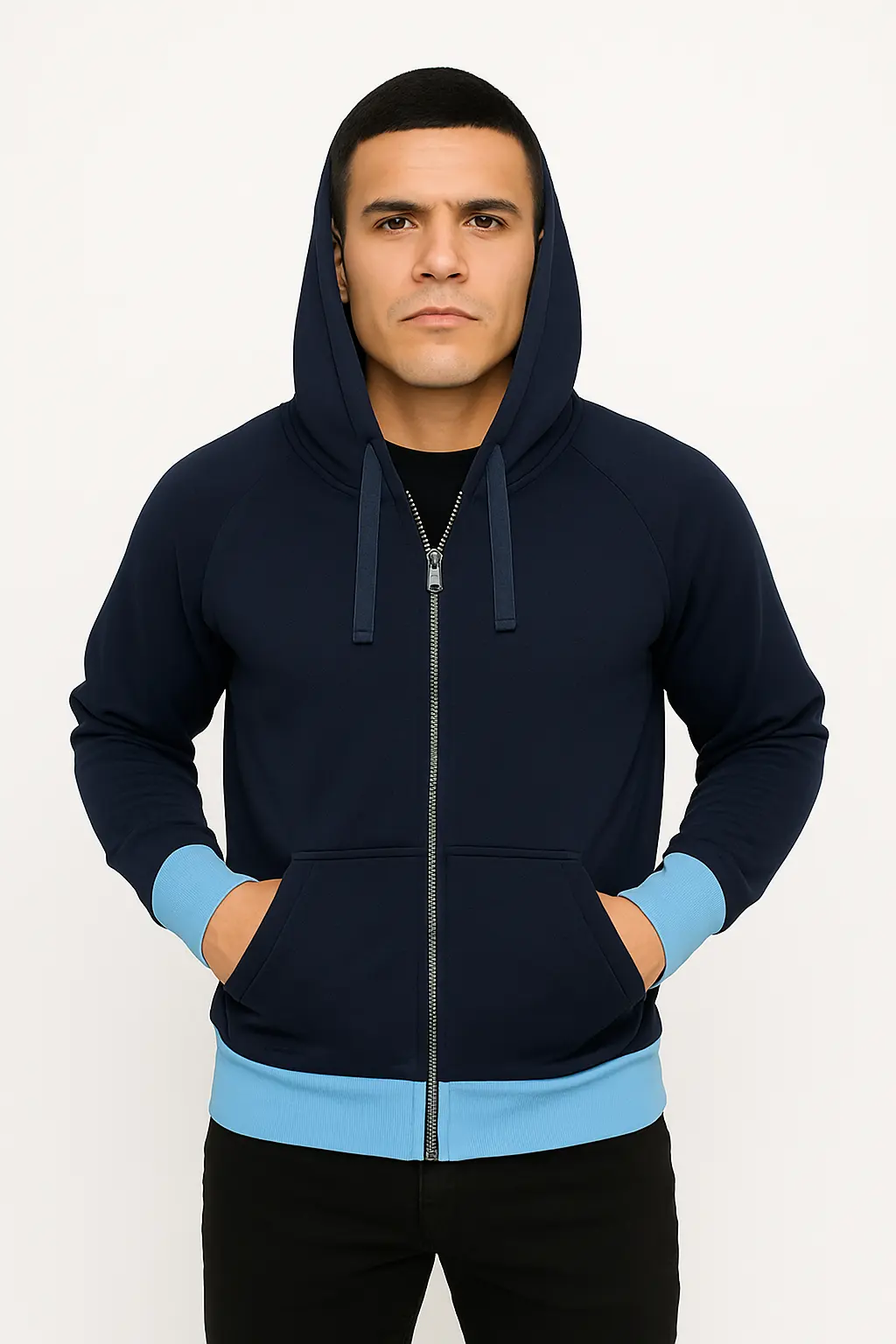 Men’s Navy Zip-Up Hoodie – Sporty Contrast Style for Everyday Comfort