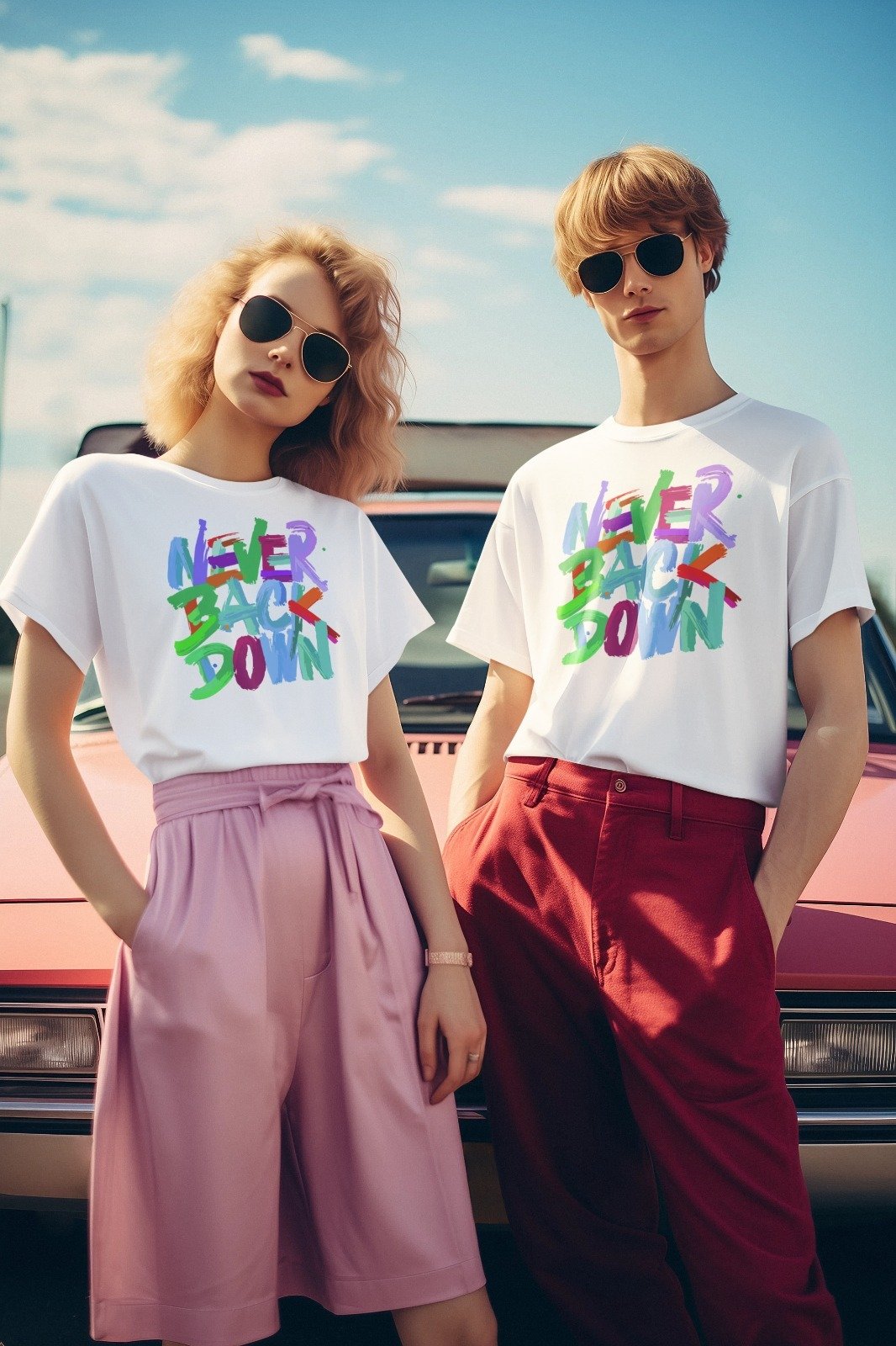 Make a bold statement with this powerful “Never Back Down” unisex graphic tee. Featuring a vibrant, multicolored brushstroke design across a classic black t-shirt, this piece exudes confidence, rebellion, and fearless energy. Perfect for streetwear enthusiasts or anyone looking to inject courage into their style.