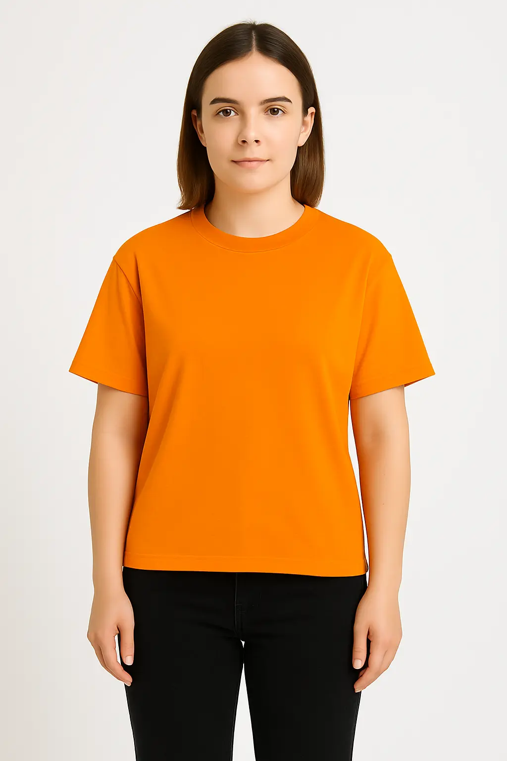 Infuse your wardrobe with fiery charm. This burnt orange t-shirt delivers warmth, vibrancy, and a confident, minimalist aesthetic. A year-round essential for color lovers and simple-style fans alike.